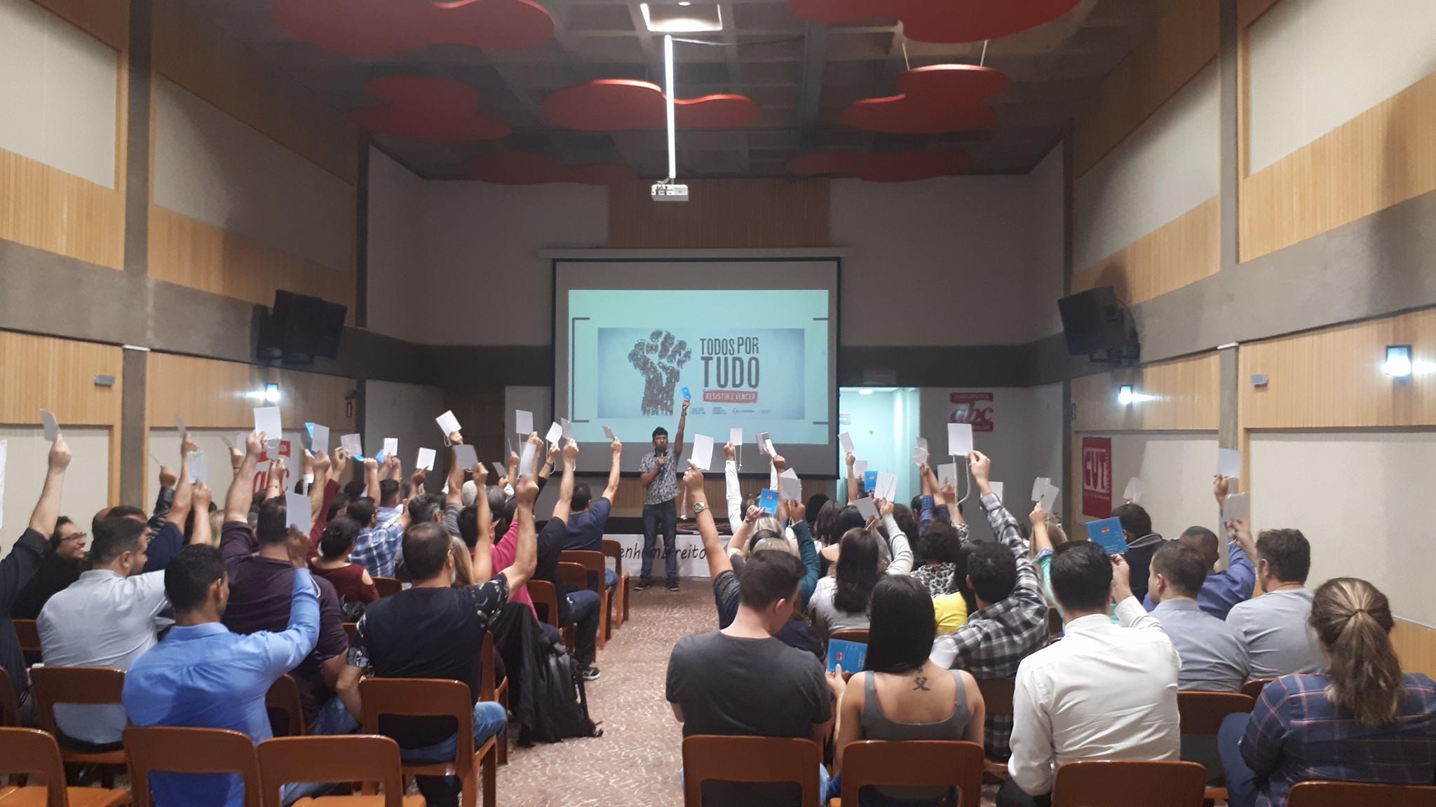 Assembleia realizada na noite desta segunda-feira, 1, na sede do Sindicato dos Bancários do ABC, ratificou a minuta de reivindicações da categoria bancária 2018 aprovada na 20ª Conferência Nacional dos Bancários.