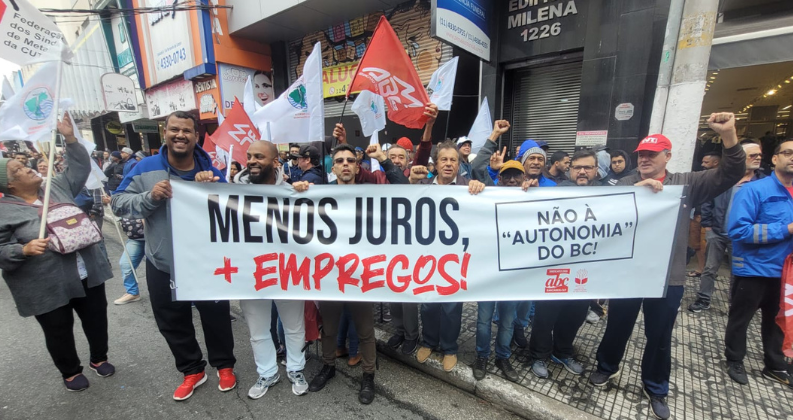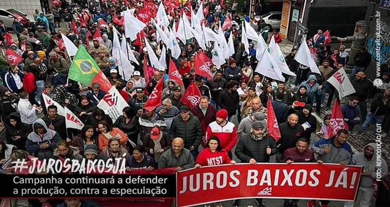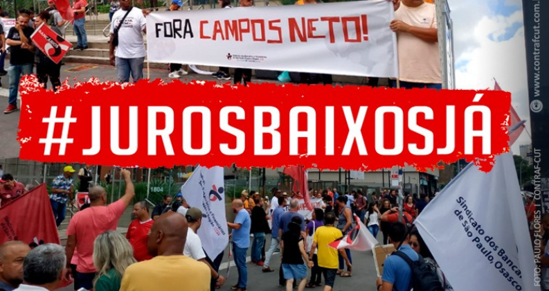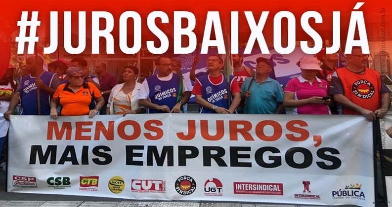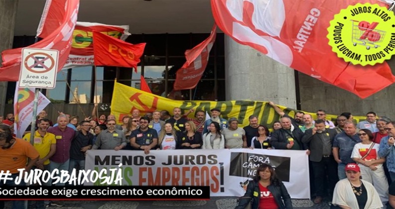 Representantes do Sindicato participaram da atividade e de ato pela queda na taxa de juros, em SP