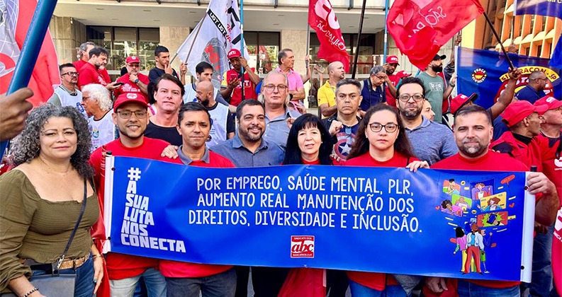 Atividade aconteceu em Santo André e foi marcada por conversas com bancários, clientes e usuários, e distribuição de boletim