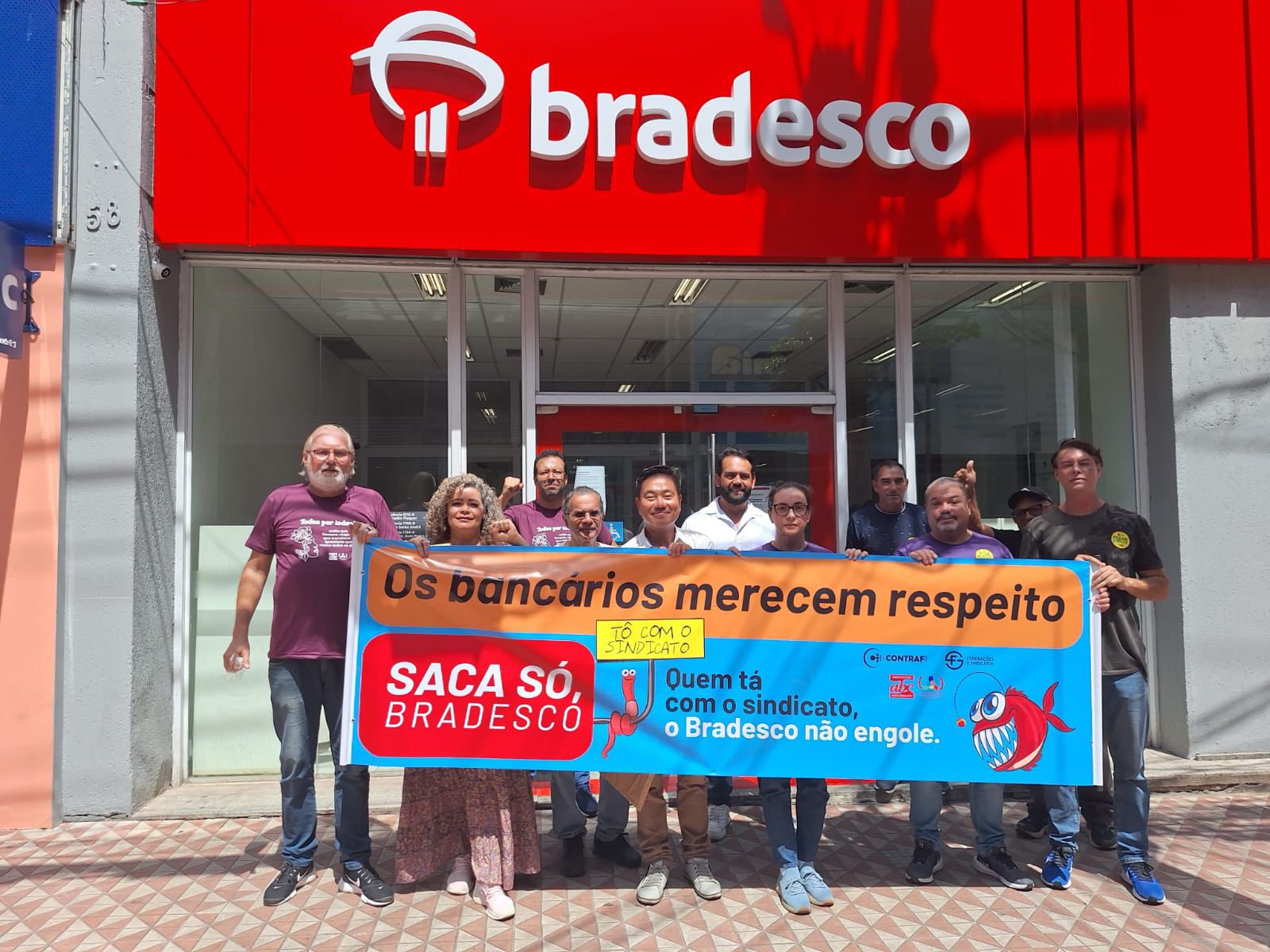 A atividade faz parte da campanha “Saca Só, Bradesco”, que denuncia a contradição entre os lucros bilionários do banco e as medidas que afetam bancários e prejudicam o atendimento à população.