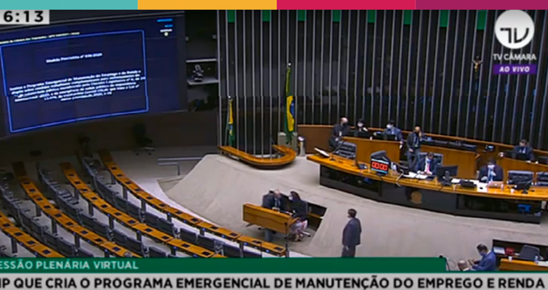 A Câmara Federal aprovou, na noite desta quinta-feira (28) , a Medida Provisória (MP) nº 936 que institui o Programa Emergencial de Manutenção do Emprego e da Renda, que permite a suspensão do contrato de trabalho, por 60 dias, e a redução da jornada e salários por 90 dias, em 25%, 50% e 70%, mas dá direito a estabilidade temporária do trabalhador e o recebimento de benefício emergencial pago pelo governo.