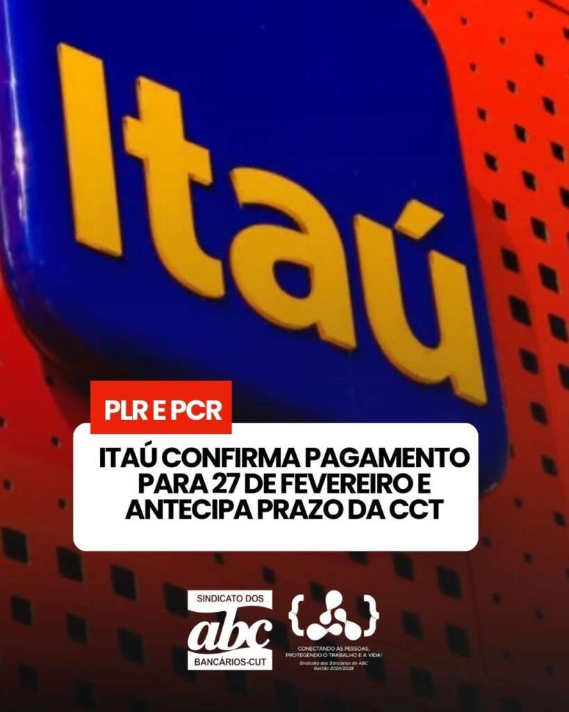 O Banco Itaú confirmou o pagamento da segunda parcela da Participação nos Lucros e Resultados (PLR), junto ao Programa Complementar de Resultados (PCR), para o dia 27 de fevereiro de 2026. A data representa uma antecipação importante, já que o prazo limite estabelecido pela Convenção Coletiva de Trabalho (CCT) é 1º de março.