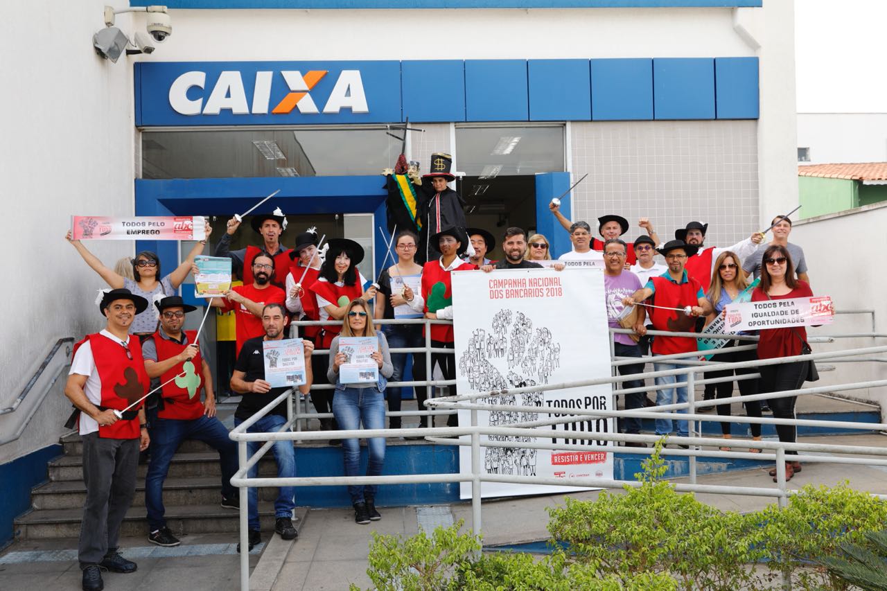 Hoje foi o dia de Mauá receber os diretores do Sindicato para atividade de lançamento da Campanha Nacional 2018. A exemplo do que vem acontecendo nos últimos dias em outras cidades da Região, a ação contou com a presença de artistas da ARCA – Associação Ribeiraopirense de Cidadãos Artistas que realização intervenção lúdica nas agências esclarecendo sobre as reivindicações e a defesa do acordo coletivo.