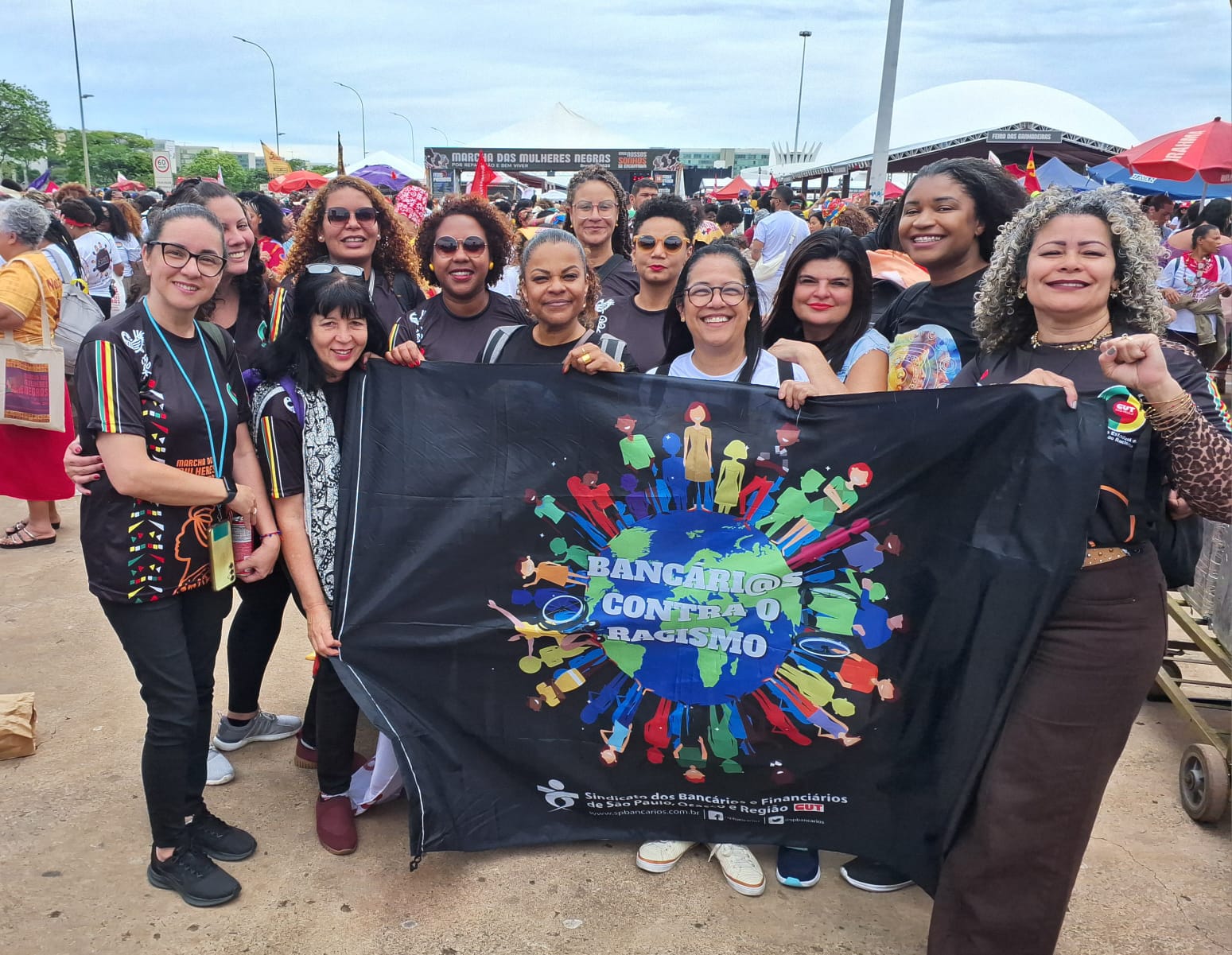 As diretoras do nosso Sindicato Inez Galardinovic, Carina Leone, Anaide Silva e Ariane Canever estão presentes na atividade, que reivindica direitos básicos como moradia, emprego e segurança, além de uma vida digna e livre de violência e políticas de reparação às trabalhadoras negras.