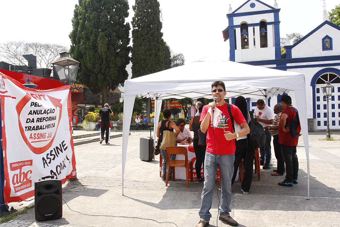 A coleta de assinaturas para tentar anular a reforma trabalhista por intermédio de um projeto de lei de iniciativa popular (PLP) foi realizada pelo Sindicato nesta quinta-feira na região central de São Bernardo. Assim como já ocorrera em Santo André, os diretores sindicais visitaram agências bancárias e instalaram um posto fixo para dialogar com a população e recolher as assinaturas.